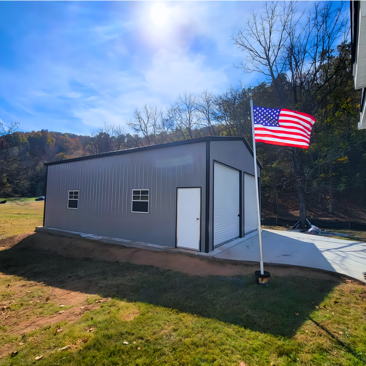 - Garages – Fully enclosed steel buildings for vehicle storage and equipment protection